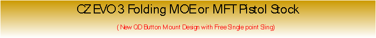 This is a newly designed Mount and Fab Defense Hinge with Magpul MOE or Battlelink MFT Stock for the CZ Scorpion EVO 3 Pistol. These can be set up to close left or right and have 5 slide positions on the tube. Hinges lock up tight in closed postion ( Spring cam actuated) . These are new styled mounts with soft tipped setscrews in the sides and no sloppy button release. Simply slide over and tighten the 4 screws with included wrench.( No SHAKE, No SLOP) This includes the Complete EVO Folding Mount/Hinge with your choice of butt stocks. NOW INCLUDES QD Button Hole in bottom and quick release single point sling !