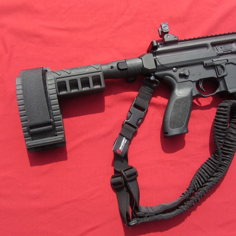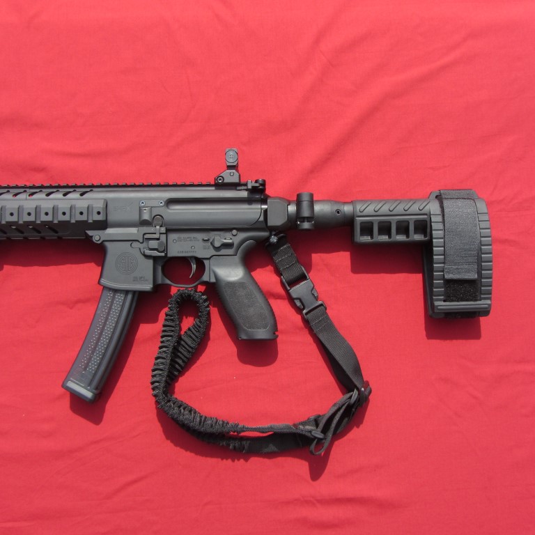 This is a newly designed folding Brace assembly for the MPX Pistol. We used one of the famous Fab Defense Polymer stock hinges as the starting point and custom adapted it to the cool MPX with our own CNC cut 6061 aluminum adapter. These are very solid platforms and lock up extremely tight when opened. This SIG Arm Brace model does have some spring tension against the frame when closed so it won't easily flop open. These mount by simply sliding the stock onto the rail and securing with the Nylon tipped set screws. Takes less than 3 minutes to take on and off. This auction includes the COMPLETE Folder mount, tube and SIG SBX15 Gen 2 Arm Brace and mounting hardware as pictured.