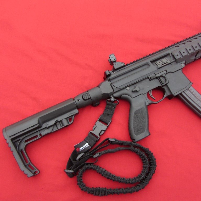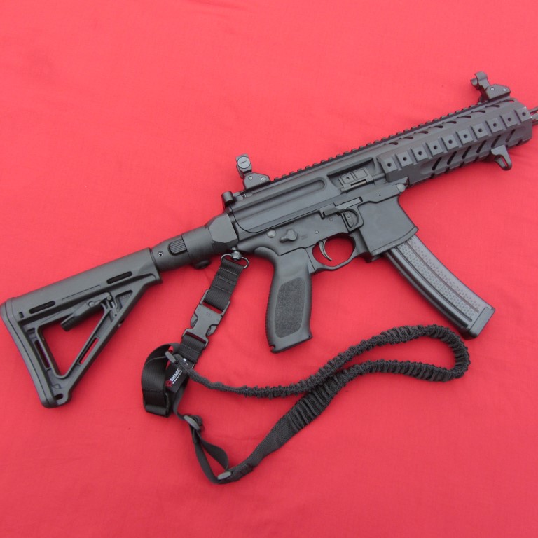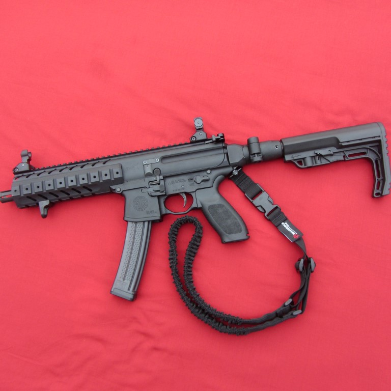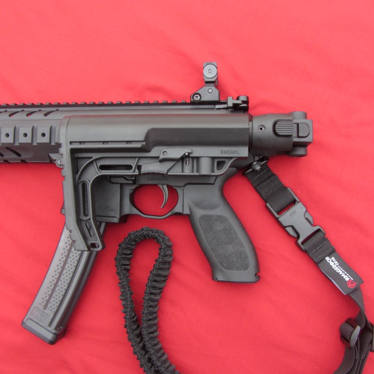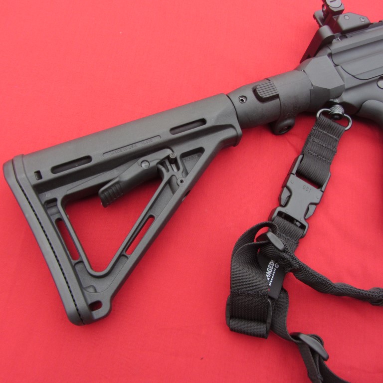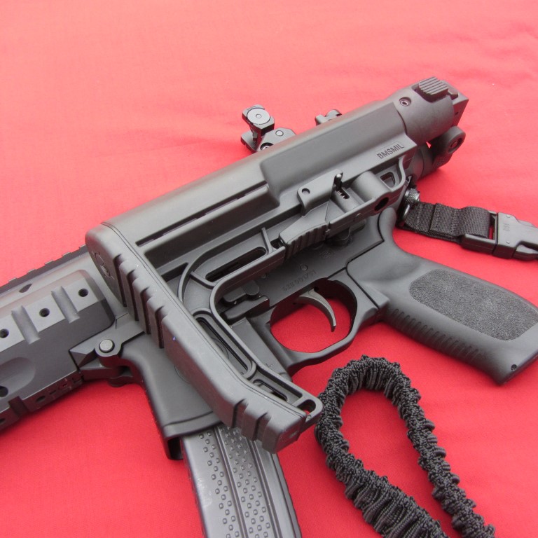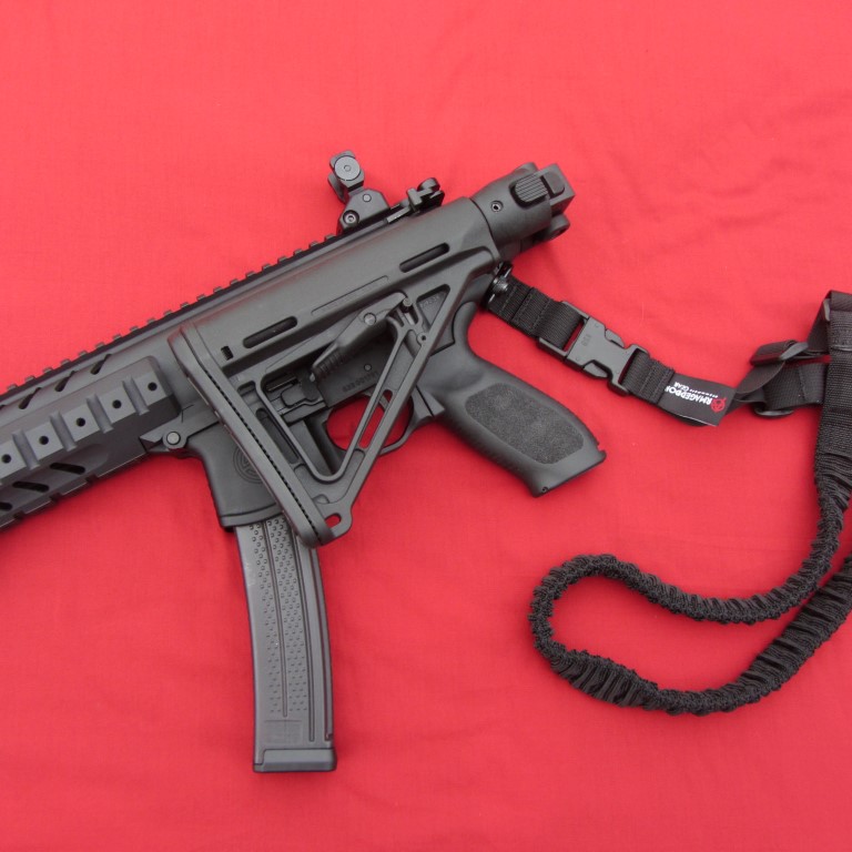 This is a newly designed folding stock for the MPX Pistol. We used one of the famous Fab Defense Polymer stock hinges as the starting point and custom adapted it to the cool MPX with our own CNC cut 6061 aluminum adapter. These are very solid platforms and lock up extremely tight when opened. They are spring loaded in the closed position and will lock closed with smaller profile ( thinner ) AR style buttstocks gently against the frame.. These mount by simply sliding the stock onto the rail and securing with the included Nylon tipped set screws . Takes less than 3 minutes to take on and off. We chose a couple different type butt stocks that fit the frame nicely when open as well as closed against the frame, while at the same time being very functional and visually appealing on this platform. These are 6 position commercial sized tubes and stocks slide in and out apx 3".
