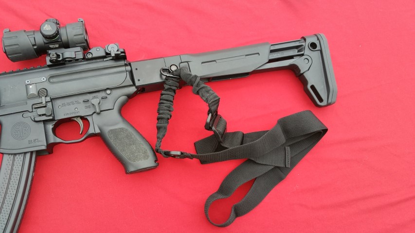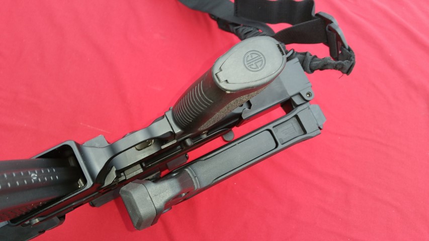 This is a new style Magpul Zhukov based folding stock for the Sig MPX Series Pistols and Carbines. For all you right handers that hate that folded stock in your belly this is the ultimate answer. We designed the rail adapter to mate the MPX and Zhukov folder to allow full clearance with the ejection port when closed and has the perfect range of adjustment from fully closed to extended. These measure 26 1/4 to 29" from rear to tip of muzzle ( no flash hider ) . The Zhukov stock locks up tighter than anything out there in both the open and closed position and has the perfect drop and cheek weld for this gun. (no thin rod in your face) These simply slide on the rear rail and are secured with soft tipped setscrews. Package includes the anodized 6061 alum mount, Zhukov Stock and QD pushbutton sling as pictured.