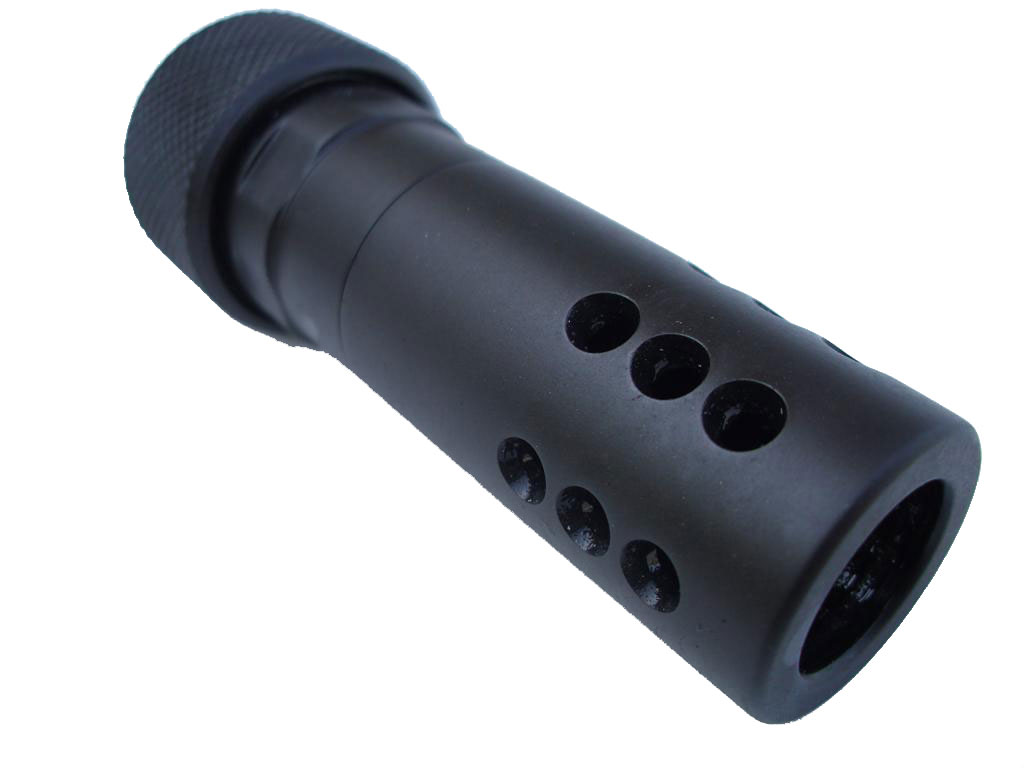 Features incorporated in our product include Chrome Moly, Black Oxide coated 3 Lug mount and nut, 6061 Black Anodized aluminum casing, Heavy duty Chrome Moly steel barrel extension. Fake cap grooves and deep diamond knurling. These are designed to work with your registered SBR 3 Lug gun or you can use to extend the barrel length to meet the 16" minimum requirements by drilling and pinning nut to attach permanently. We incorporate a positive one way detent in our nuts to allow easier one hand installation and removal without holding the retaining nut.