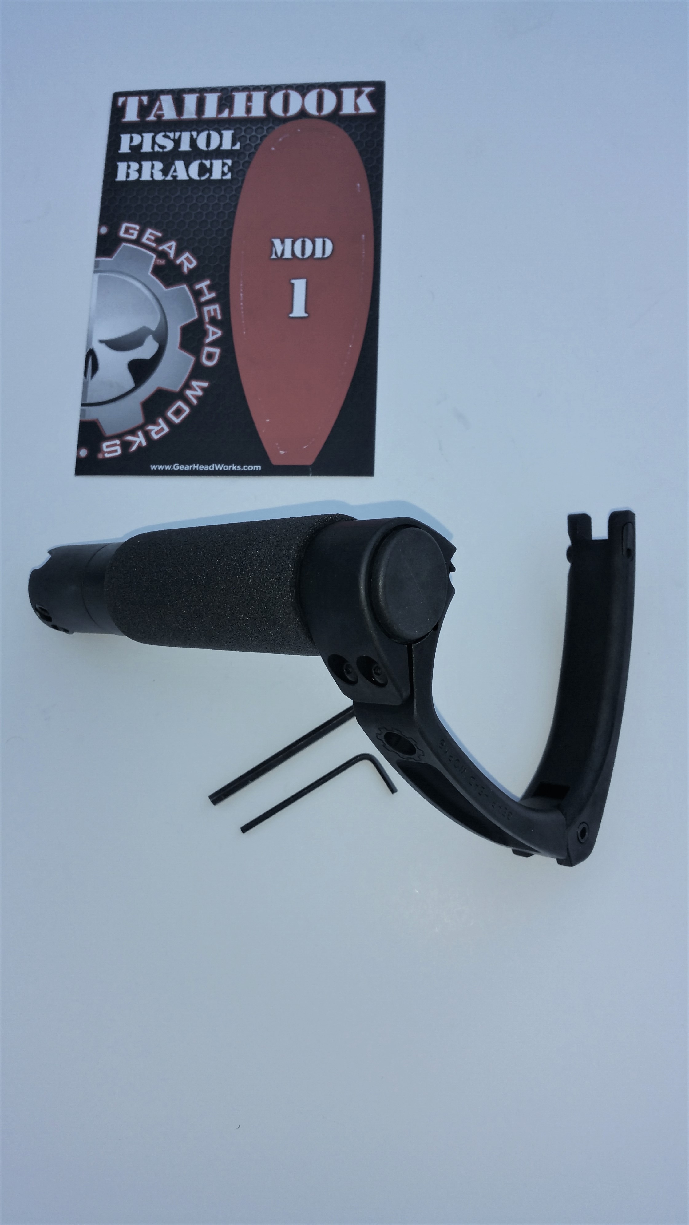 This is a UZI PRO Pistol Swingarm Conversion to allow swapping your factory SB Tactical Brace/swingarm to a adjustable Mod1Taillhook. These simply replace the arm / brace tube and use the existing Frame Mount /hinge that comes with the brace package. Easy swap by removing the two screws and installing this arm in place of the old Club foot brace . Bottom Thumb screw allows apx 3 inches of adjustment. Foam covered tube for nice check weld.