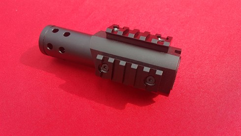 These are Railed Forends for the Uzi Pistol and Micro Models ( including the new Pro Pistol ) They are designed to fit our Pistol Uzi Barrel extensions perfectly and are designed with the PRO model in mind. The opening is 1.25" ID to fit the Micro Can we manufacture . Others suppresors "may" fit if just under 1.25" OD. These are cut to fit the PRO pistol perfectly with a nut release notch on top and a clearance slot on bottom to index into the lower forward rail. They are 3" long overall and incorporate 3 2" long Aluminum Picitanny rails for mounting lights, laser, etc.. They slide over and are secured with a soft tipped set screw in the bottom. Made from solid billet 6061 , Anodized aluminum. Solid as a rock ! Buy the matched pair for a perfect fit.