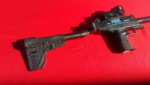 This is a Blade Brace conversion kit for the new UZI Pro Pistol. We used the exceptionally designed ShockWave Blade brace mated with our own CNC cut Aluminum, 10 position tube . This kit allows you to use the original Pro Pistol Mount and hinge that came with the clunky Rubber arm brace and simply replaces the rear tube with a Blade style tube and Enhanced Cheek brace. Easy to install ! MADE BY TITLEIIARMS in USA . WE NOW SHIP SIGNATURE REQUIRED ON ALL ORDERS TO PREVENT "LOST" PACKAGES. NO FORM 1 ( SBR ) status is required for Brace setups !