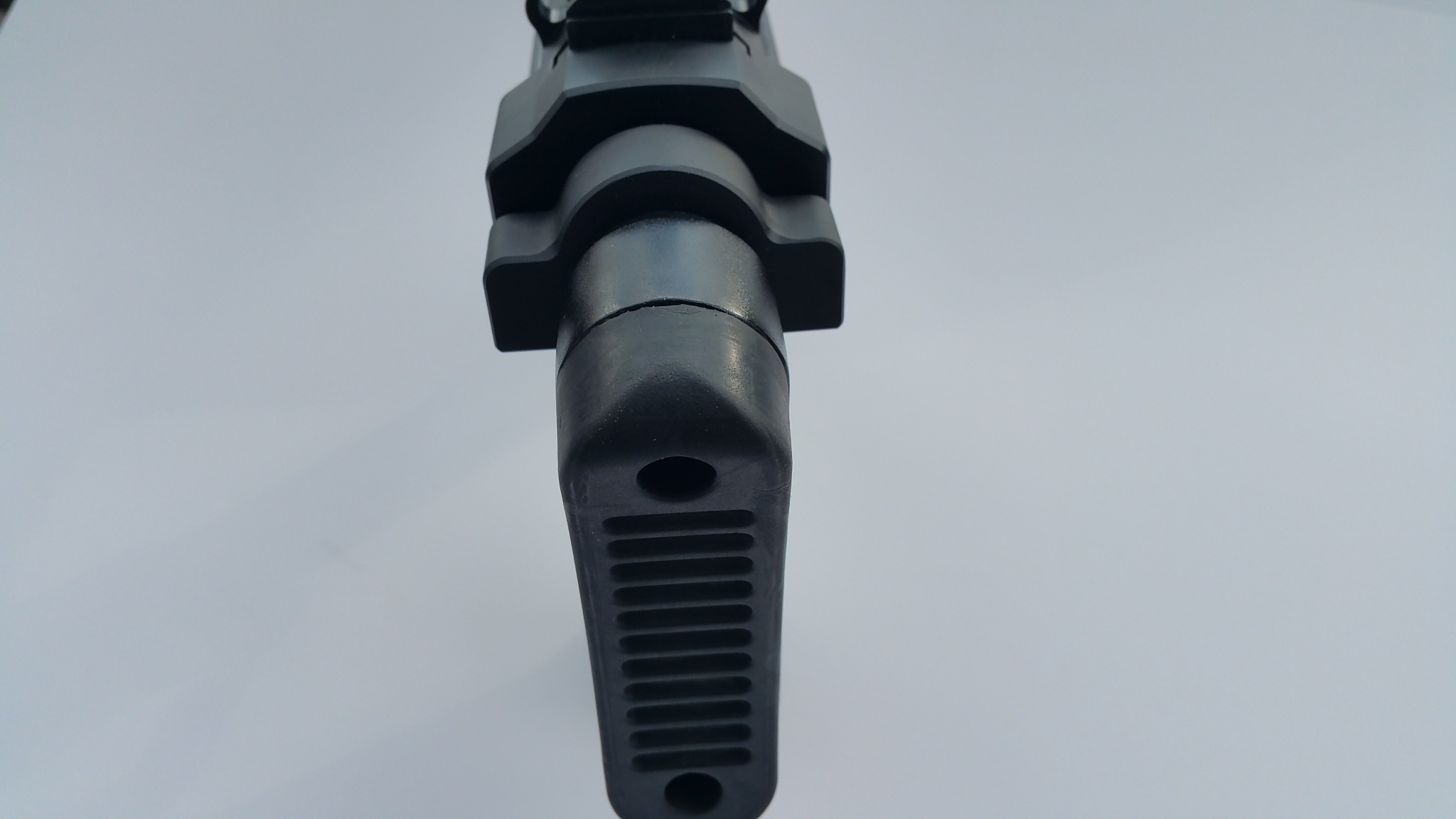 Bottom Thumb push button release keeps your grip hand from moving back and forth !