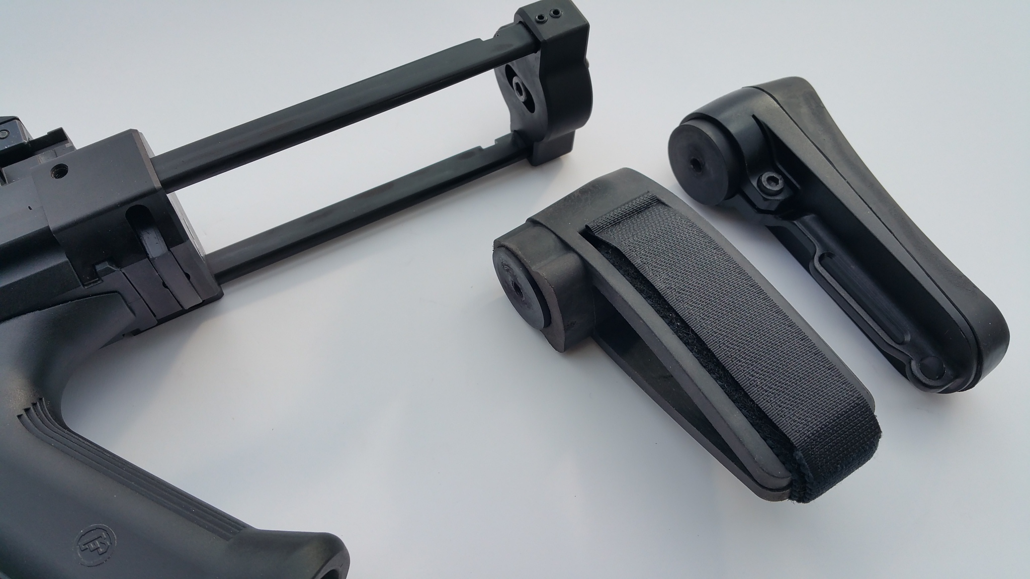 Available with a SB Tactical Mini Brace, Mod 1 Tailhook Brace or Ace Ultralight Padded Buttstock . Adjustable length and drop. Solid CNC Machined Aluminum