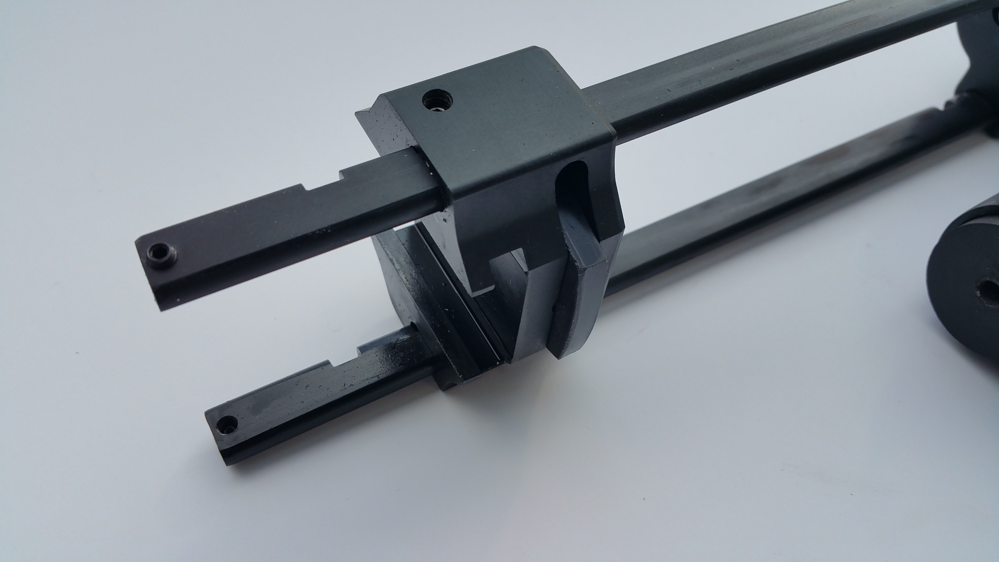 Fits perfect on any EVO Barrel or Rail length. Designed to simply slide over the barrel and attach to the rear portion or barrel stub ahead of the trunnion. Fits ALL thread type guns. Gen 1 and Gen 2. Quality made from billet 6061 Anodized Aluminum with a Chrome Moly barrel liner and Hot Tanked blued mount.