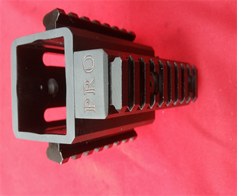 This is a ONE OFF Custom made Floating Hand Guard for the UZI PRO Pistol. It slides over the existing short rail and extends it to 4 " The Top and side rails are 3" long. Installs in 2 minutes by slipping over lower rail and securing with the two soft tipped setscrews. Fits like a glove and SOLID. Will accept cans just under 1.5" OD. ( Shown with optional 4" 1.375 Barrel extension)
